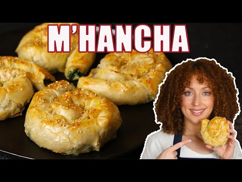 A la base, la m’hancha est une pâtisserie en forme de serpentin originaire du Maghreb. Un héritage de la cuisine ottomane selon certains historiens. On en trouve aussi des versions salées. La m’hancha est rapide à faire et fait son petit effet à table.