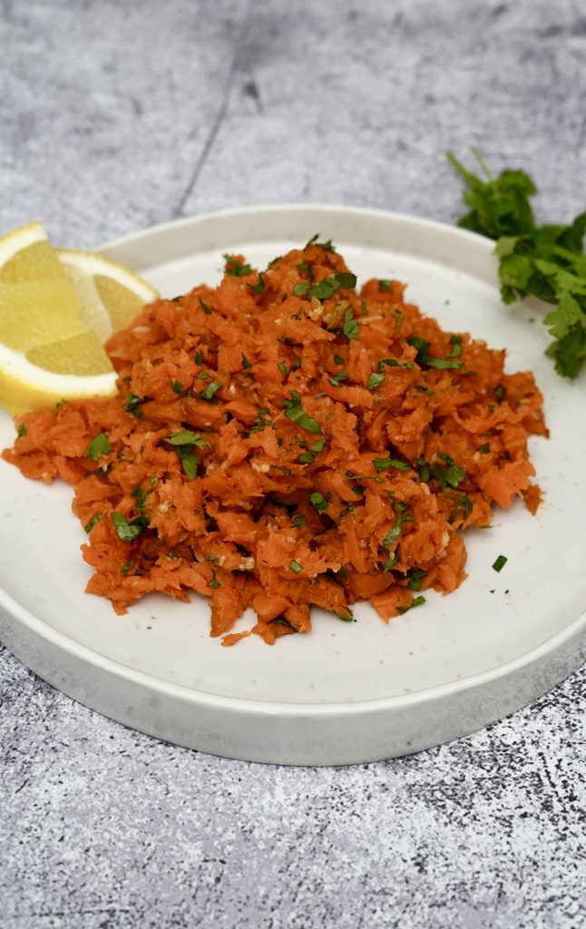 Vous avez bien lu ! Si vous souhaitez déguster cette salade de carottes à l’orientale de façon authentique, il faut écraser vos carottes. Ma belle-maman d’origine marocaine a fermement insisté sur ce point. Les carottes sont cuites, puis, écrasées avec un presse purée. Il ne faut pas les écrabouiller, entendons-nous. On doit garder de la mâche, de la texture. Cependant, pour gagner une ou deux minutes, il est possible de les laisser en rondelles, mais ce n’est pas comme ça qu’elles sont traditionnellement présentées. Enfin, dernier avantage à cet « écrabouillage », les épices se marient mieux aux carottes.